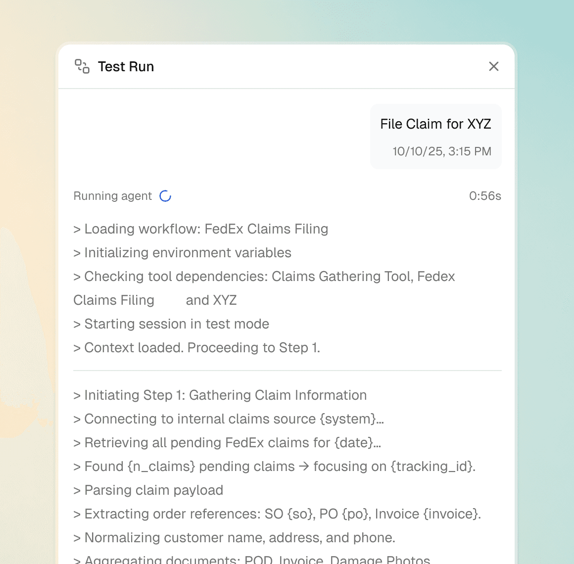 Test workflows in a safe sandbox environment before anything goes live. Teams review every action, approval path, and escalation trigger in a simulated environment with real data without any production risk.