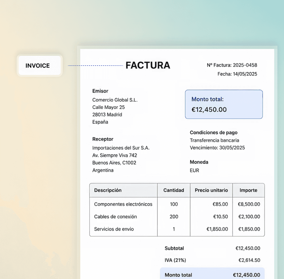 Process documents in English, Spanish, and other languages your supply chain operates in.